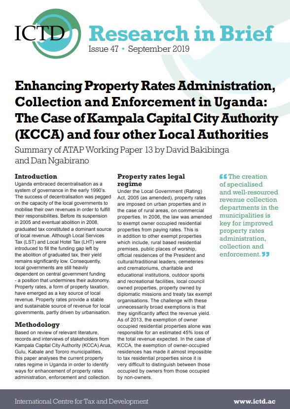 Enhancing Property Rates Administration, Collection and Enforcement in Uganda: The Case of Kampala Capital City Authority (KCCA) and four other Municipalities